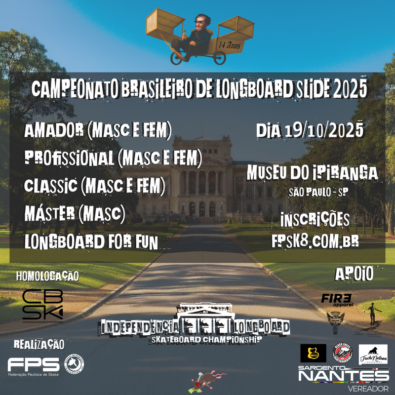 Vem aí o maior campeonato de skate de ladeira do Brasil, o Independência ao Longboard 2025 acontece em 19 de outubro no nosso tradicinal Quintal (Parque da Independência - SP) e dessa vez mais foda do que nunca, válido como o Campeonato Brasileiro de Donwhill Longboard Slide.