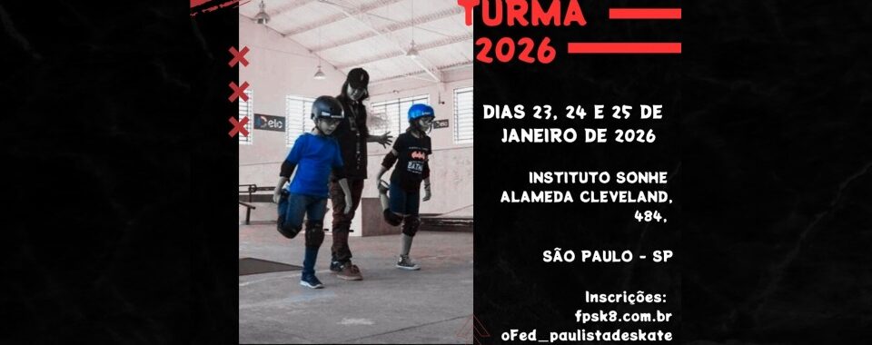 Estão abertas as inscrições para o curso de formação de professores de skate da Federação Paulista de Skate e esse ano com homologação da Confederação Brasileira de Skateboarding.